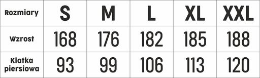 - Rozmiary: s, m, l, xl, xxl,