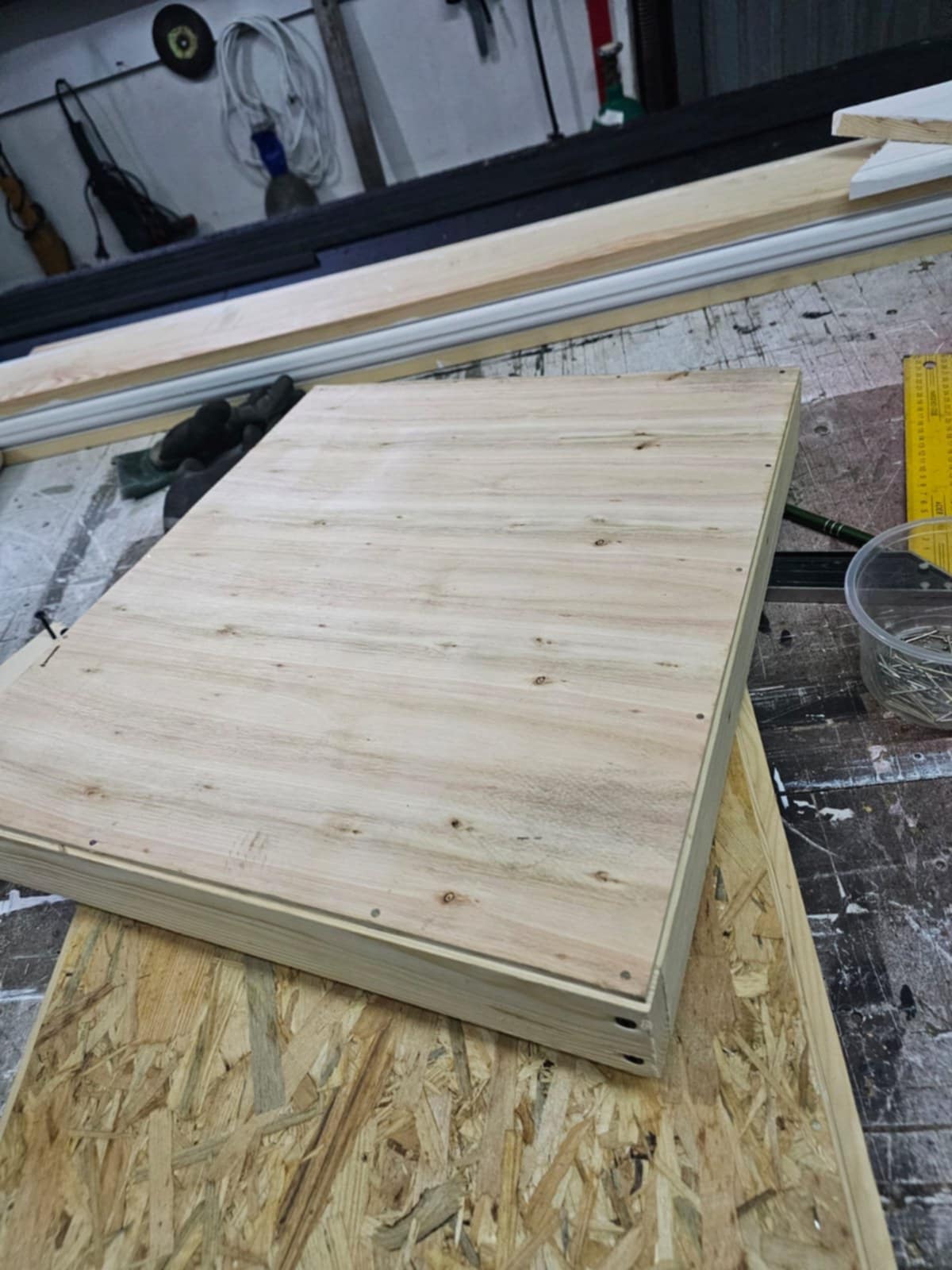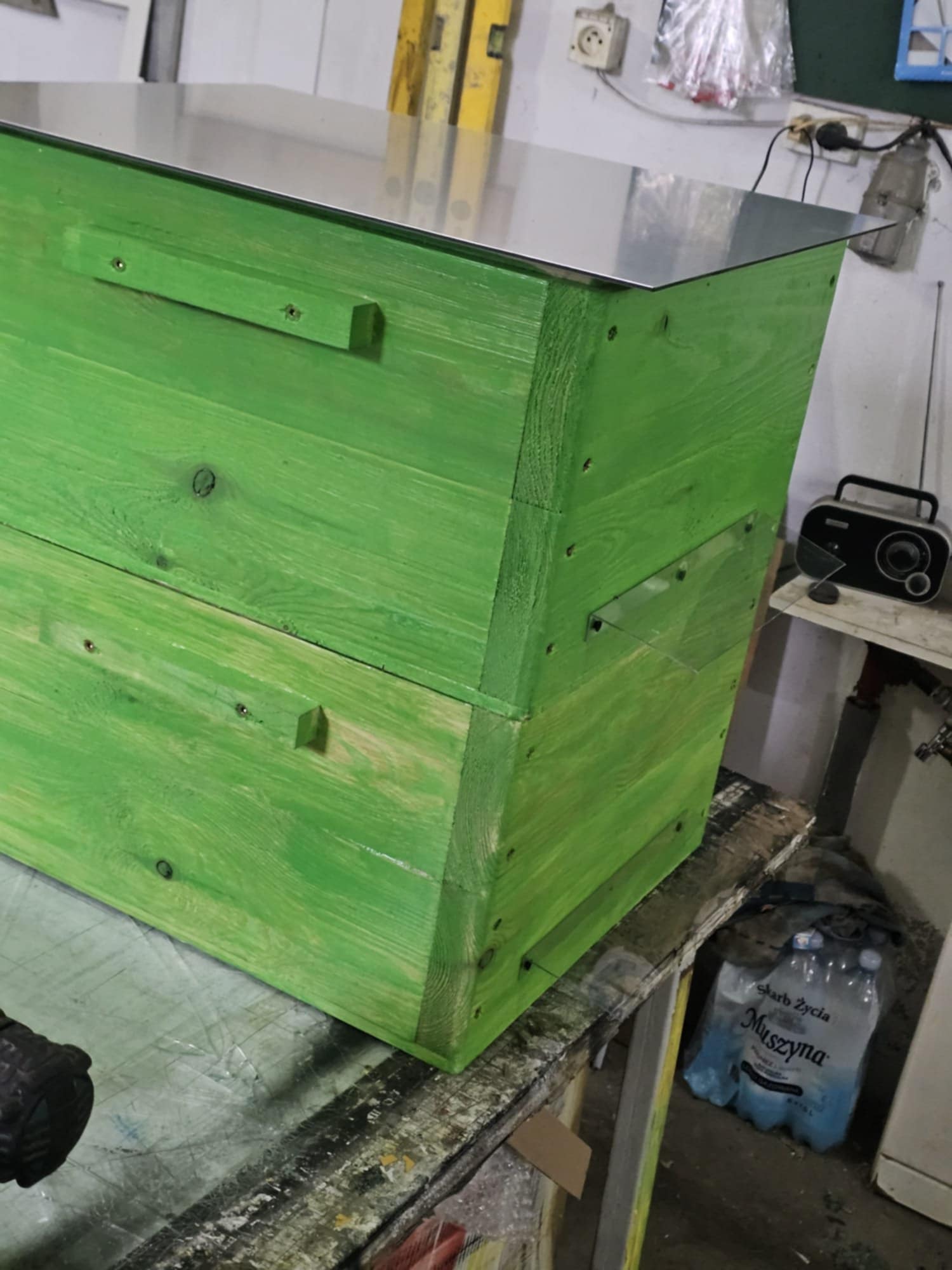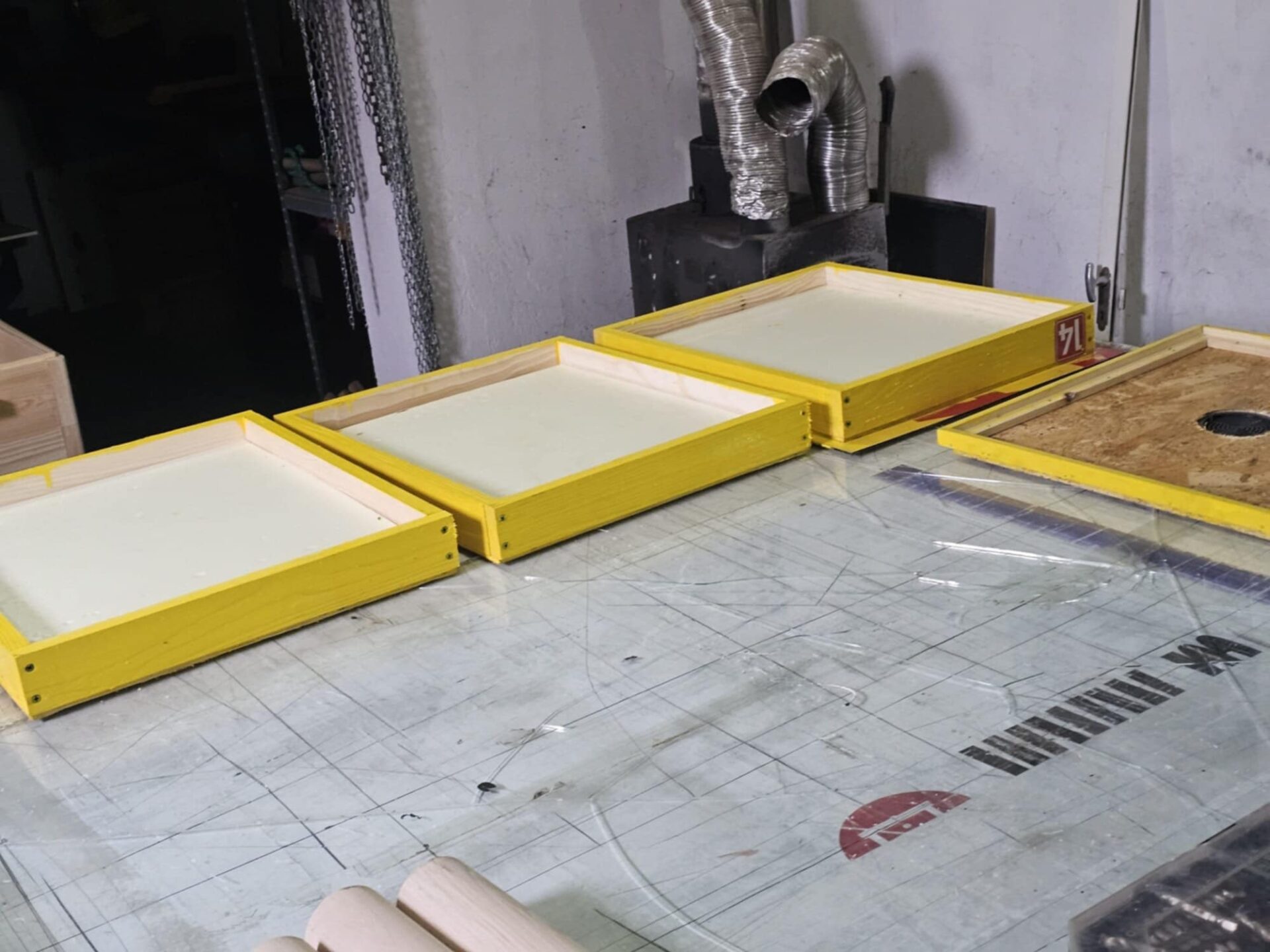 A żeby było ciekawiej Bartłomiej wykonuje też elementy uli drewnianych wielkopolskich. Dla tych, którzy nie wiedzą ta płyta z otworem na środku nazywana jest w „pszczelarskim języku” powałką. Bartłomiej zbija też daszki, który jest ocieplany od spodu, natomiast na górę montuje płytę aluminiową z rdzeniem PVC. Rdzeń znajduje się między warstwami aluminium. Tak wykonany daszek jest bardzo trwały. Testowaliśmy go sami w zeszłym roku i jesteśmy bardzo zadowoleni.